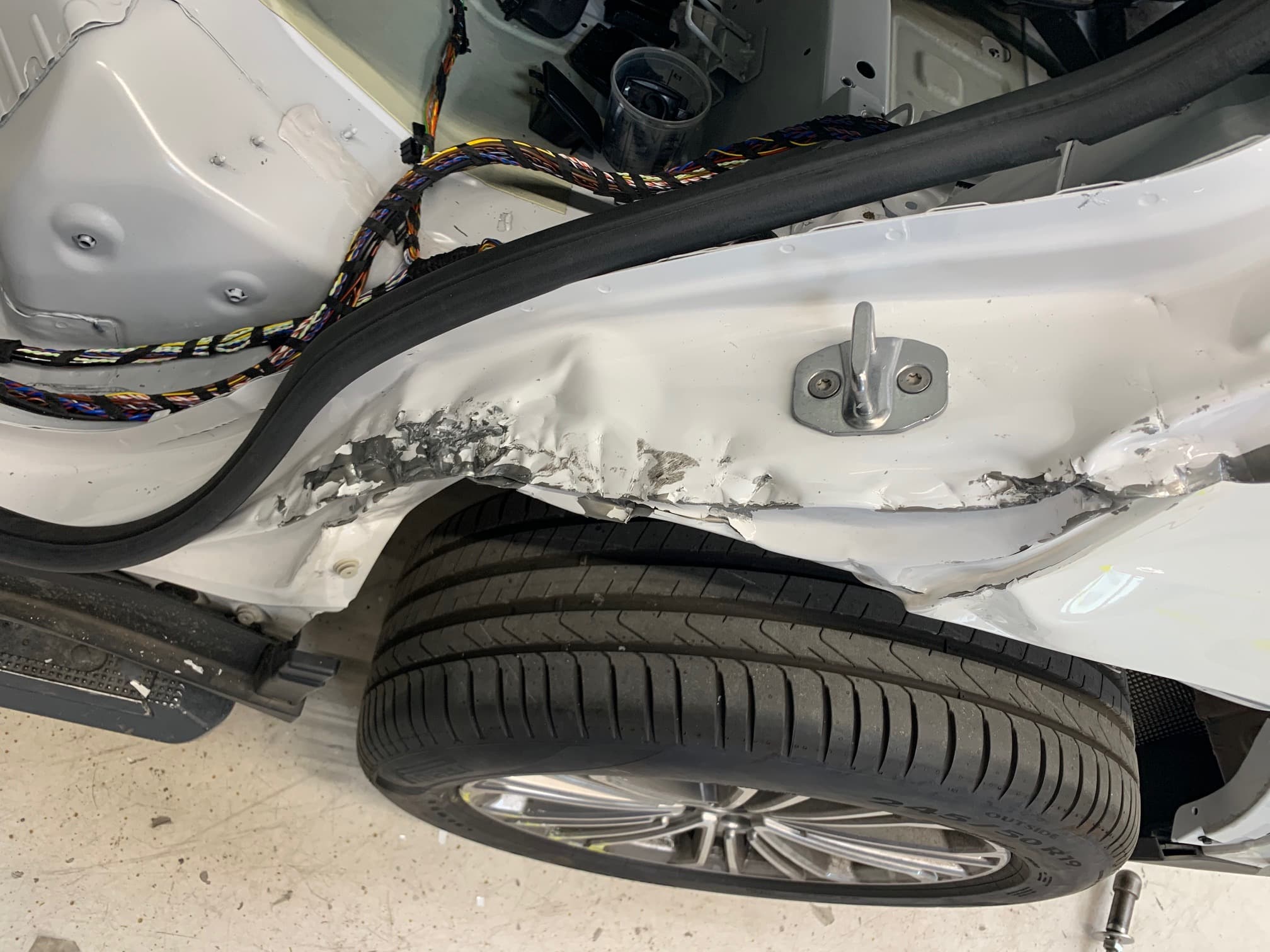 Von außen wird die Schadenstelle währenddessen mit einer Reflexionsleuchte angestrahlt. Dadurch ist sowohl der Hebel auf der Innenseite des Blechs, als die Struktur der Delle besser sichtbar.