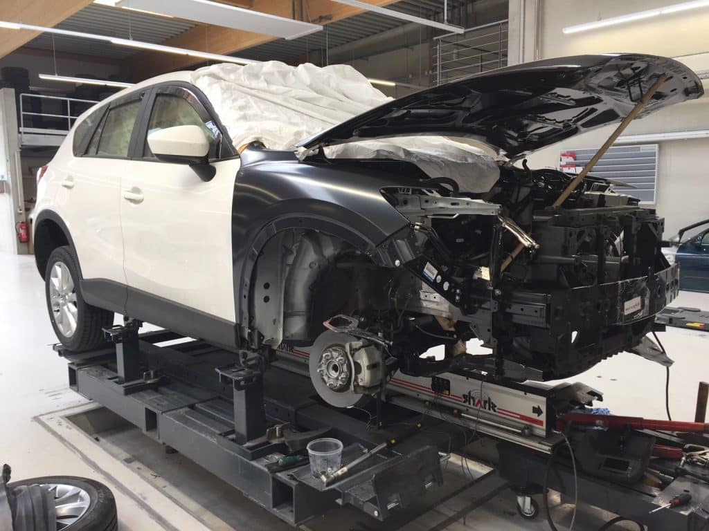 All dies macht die Karosserie zu einem besonders stark beanspruchten Teil des Autos, welches bei aller Robustheit auch sehr sensibel sein kann. Vor allem im Hinblick auf den Verzug von Rahmen und einzelnen Abschnitten der Karosserie können auch bei leichten Kollisionen schnell schwere Schäden am Rahmen oder an der Achsgeometrie entstehen, welche dann oft nur durch präzise Messungen nachvollzogen werden können. In unserer Werkstatt besitzen wir neben den nötigen Mess- und Kalibrierungswerkzeugen auch eine sogenannte Richtbank, um präzise Rahmenreparaturen durchführen zu können.